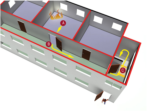 1. Planløsningen i en branncelle må være slik at det er enkelt å orientere seg og finne utgangene.