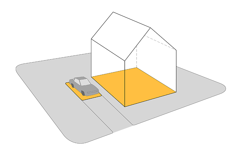 § 5-2 figur 1: Bebygd areal for en tomt. (Klikk for større bilde.)