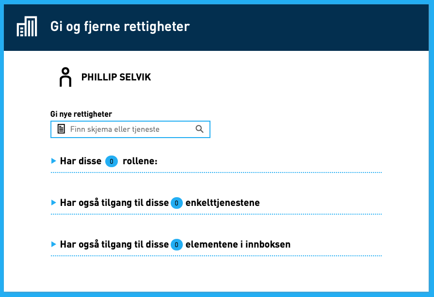 - Gå tilbake til oversikten over rettigheter tilknyttet personen eller foretaket